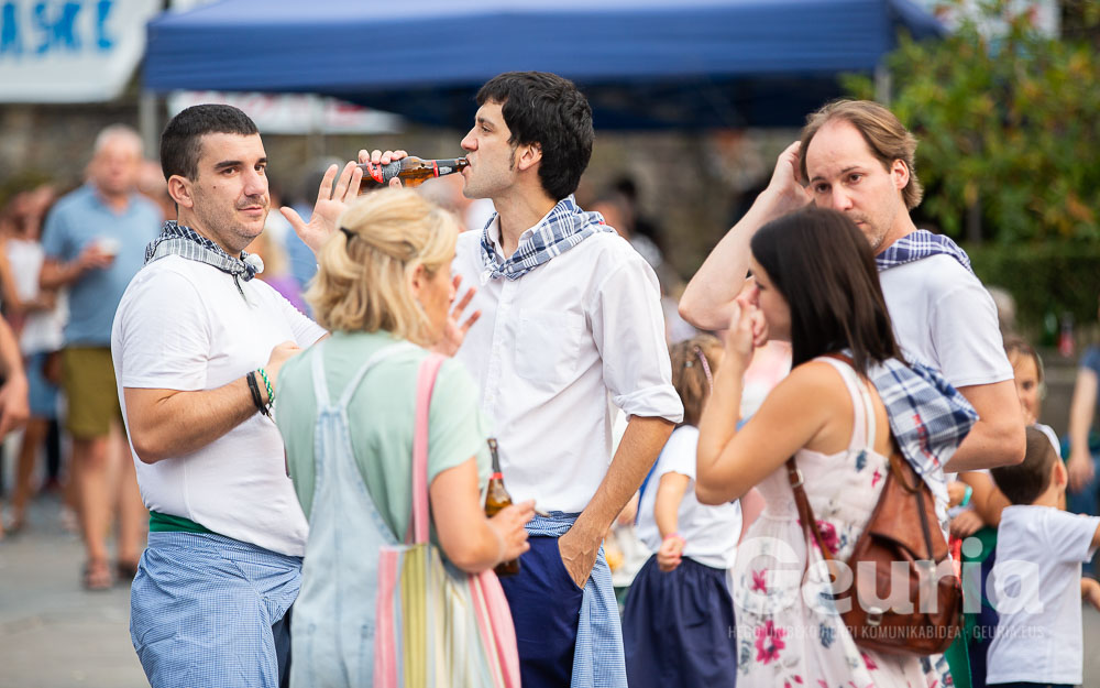Txupinazoa eta serpentinen ostean luncha egin dute Udaletxeko Euskaldun Berria aretoan Udaleko langileek eta segidan txosnak zabaltzen hasi dira.
