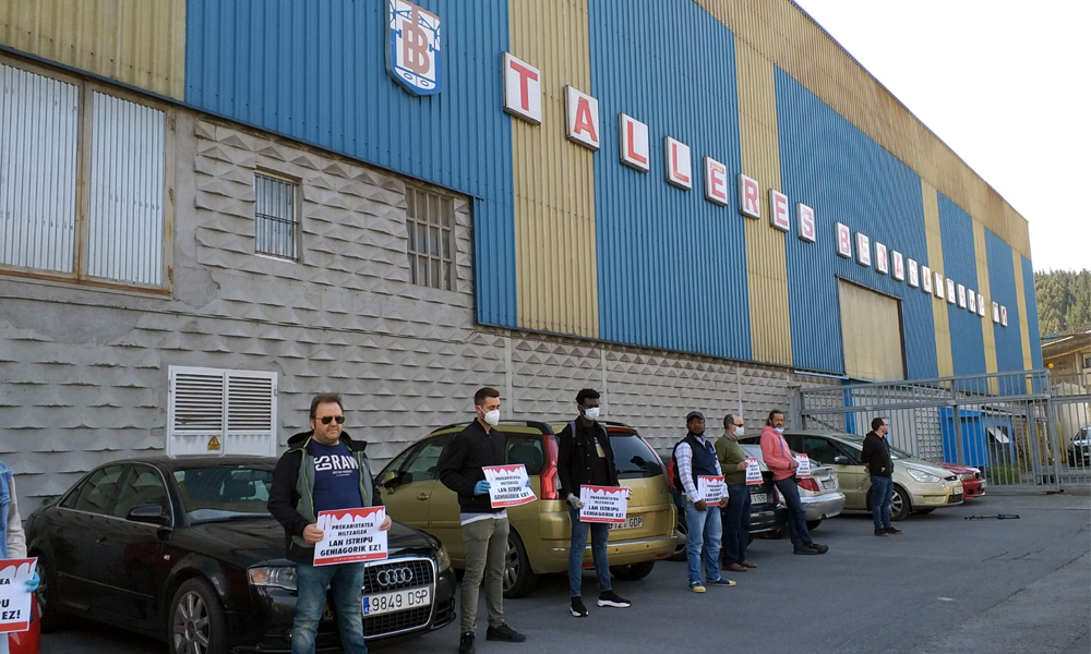 Atzoko lan istripua salatzeko kontzentrazioa egin dute Talleres Berasategui lantegiko beharginek
