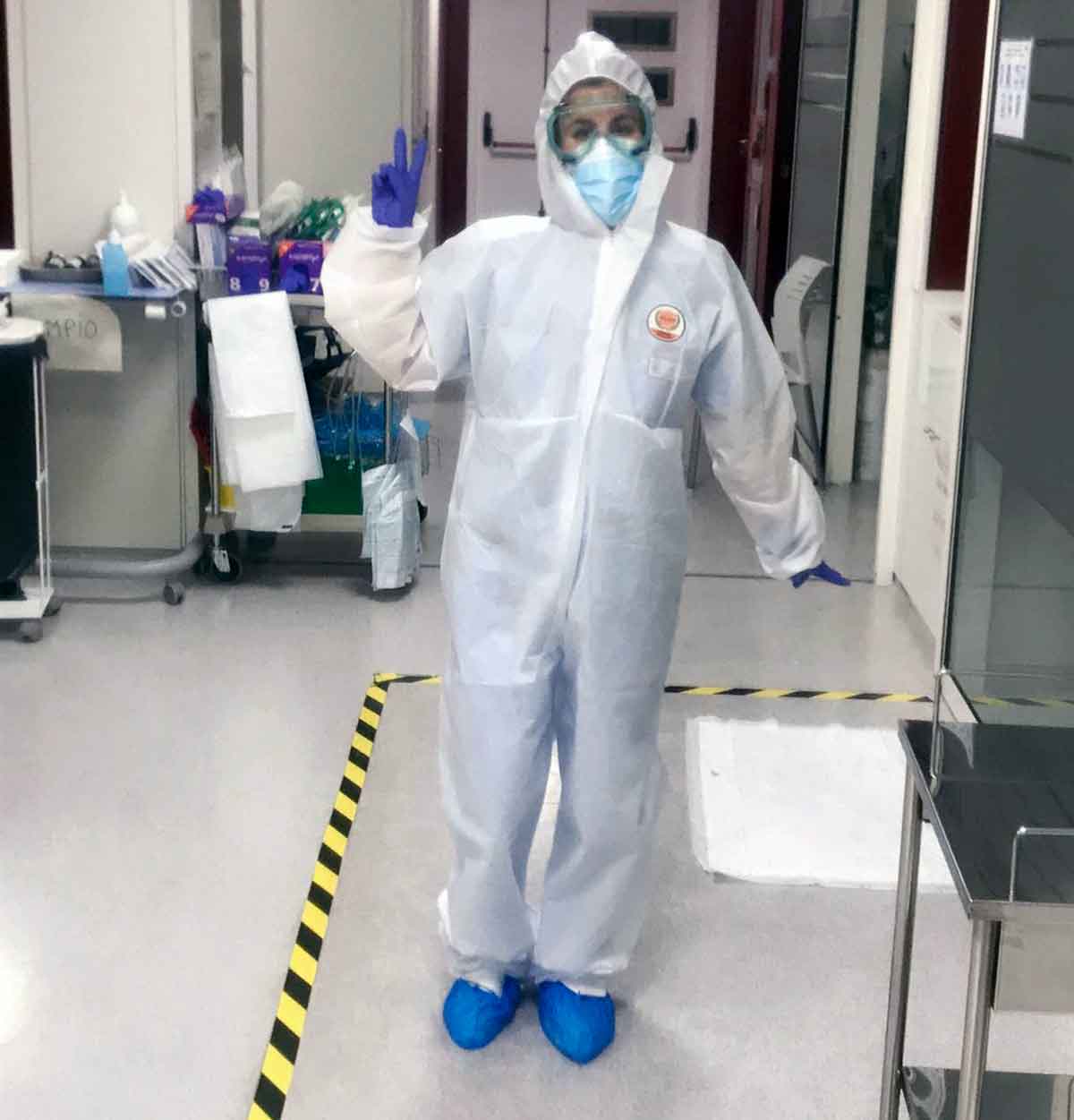 Hala da. Basurtuko ospitalean izan genuen lehenengo positiboarekin kontaktuan egon nintzen. Momentu horretan ez zegoen baieztatutako kasurik Bizkaian eta ez genuen neurririk hartu pazientearekin egotean, neurririk ez zegoelako. Gainera, gaixo hori ez zen ospitalera etorri eztula edo sukarra izateagatik; beste gauza batzuengatik ekarri zuten. Orain, ospitale osoan, nahiz eta koronabirusa ez daukaten gaixoekin egon, aurpegiko maskara eta eskularruak erabiltzen ditugu badaezpada ere.