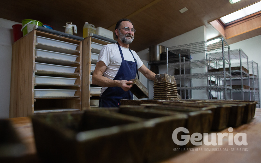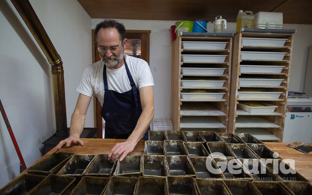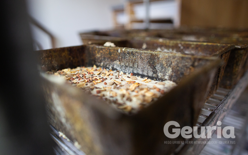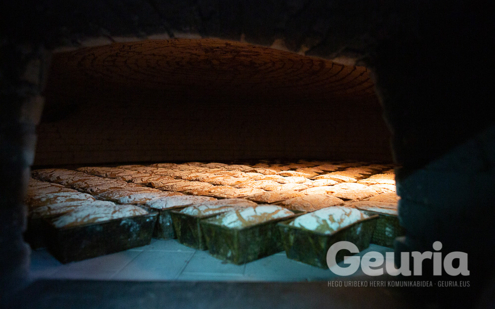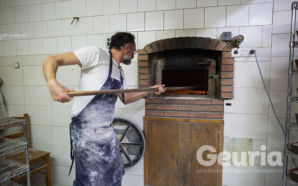 Kanpoan hotz, barruan bero. Gozo. Lantokia gurpildun erretiluz beteta dago, bandeja altuak, eta masa eta gailu guztien artean ogiak ikus daitezke, han eta hemen. Bulegoa ere badaukate, eta 600 gramoko ogi batek paper-zapalgailu funtzioa egiten ditu faktura batzuen gainean. Autentikoa. Irrati bat piztuta dago eta 90. hamarkadako abesti mitikoek garrasi egiten dute lantokiko paretetan. “Egun hauetan ondo baino hobeto gaude lanean”, azaldu digu Txuferrek begiak moldeetik kendu barik. “Uda aldean egiten duen beroa jasangaitza da, izerditan blai egiten dugu lan”. Lankide eta lagun bien harremana sanoa dela urrutitik nabari daiteke: elkarren artean zirikatzen, irribarretsu, eta lana benetan ondo egitea gustuko dutela bistan da.
