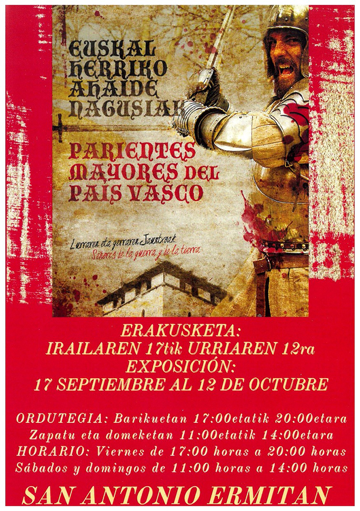 Urriaren 12ra arte Ermitabarriko San Antonio ermitan ikusgarri dagoen erakusketa ibiltari honek XIII. mendetik XV. mendera ‘Banderizo’ edo ‘Jauntxo’ bezala ezagunak diren ‘Senide Nagusien’ bilakaera ezagutarazten du. Pertsonaia horiek garai hartako gizarteko familia garrantzitsuen buruzagiak ziren.